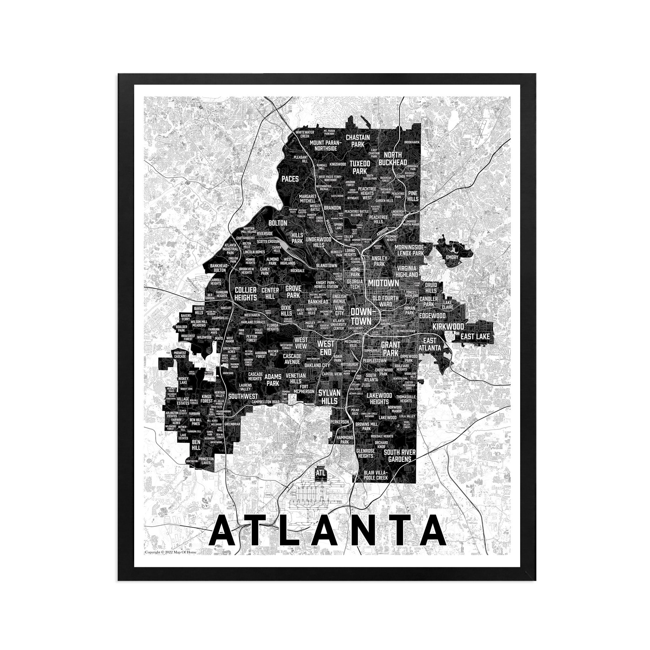 Atlanta Neighborhoods Map Atlanta Ga Housewarming Going Etsy
